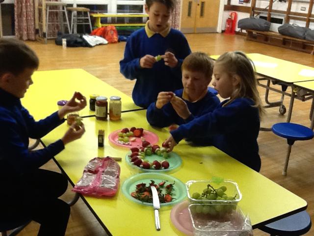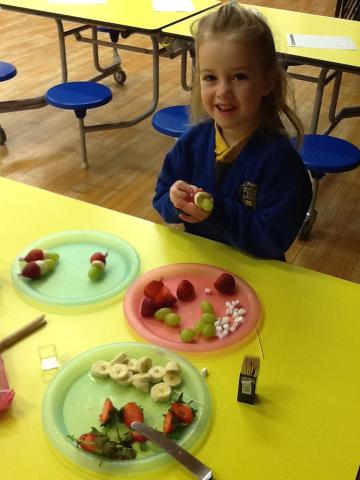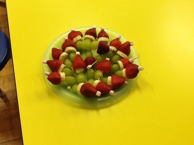 We had lots of fun making our Christmas fruit kebabs this morning, even more fun eating them! ![]()