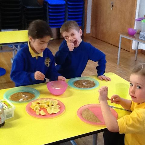 We managed to do our chopstick challenge today, after a little bit of practice the children teamed up to see how many shredded wheat they could put in a bowl within 30 seconds. Lots of fun was had and some children went on to do some individual races. Some also insisted on using the chopsticks to eat their breakfast.