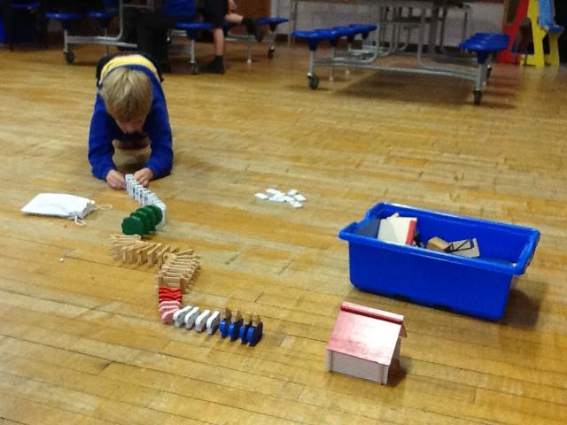 I was very impressed with Archie's patience today whilst making this farmyard dominoes track, it was a shame to have to ask him to clear it away at the end of the session