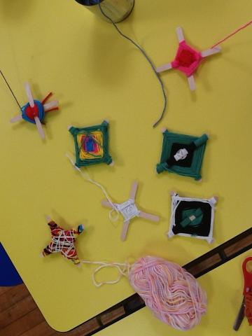 The children really enjoyed doing some weaving today, some found it a little tricky but I was really impressed with their perserverance. You can see by the concentraion on their faces that they were determined to get the hang of it. They were very pleased with the finished articles and keen to take them home to put on display