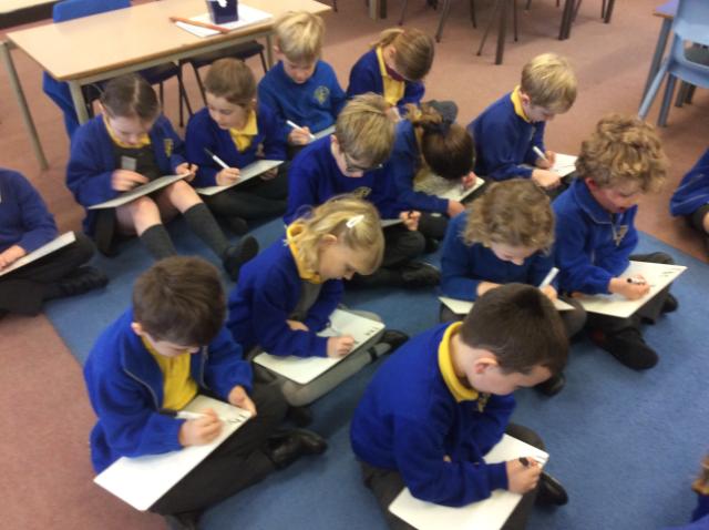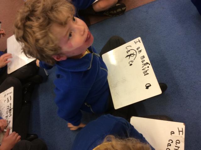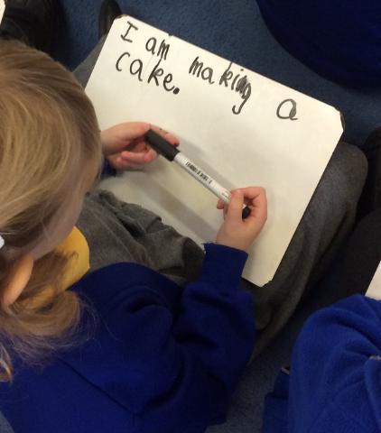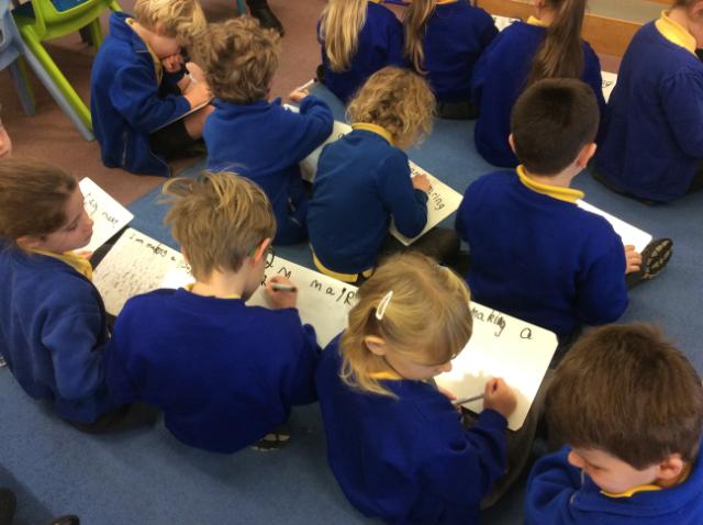 I simply had to share the following pictures, which show the children working hard to write dictated sentences. The room was literally buzzing with the sounds of each child segmenting the words they wanted to spell in order to complete each sentence! The level of concentration was amazing and the children were clearly proud of their efforts, as was I!