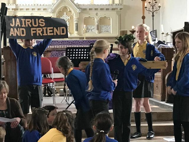 After singing 'Lord of the Dance' and a reading from Matthew 28:1-20, Class Nigtingale (Years 1 & 2) performed a poem called 'He is risen'.