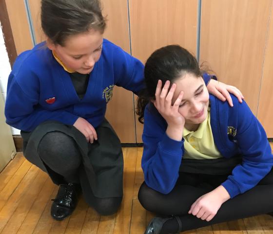 ‘Compassion’, one of our new school values has been explored in an assembly. To help children understandwhat compassion meant, I used role-play with five children to help me explain. I set a scenario in whichchild ‘A’ came onto stage feeling sad and sat down with their shoulders hunched over. Child ‘B’, looked at child ‘A’ in despair, child ‘C’ pointed accusingly at child ‘A’, child ‘D’ looked at child ‘A’ and looked away. It was only child ‘E’ who looked at child ‘A’ and went and put their arm around her. I asked children to think about who they thought Jesus was and we discussed how Jesus always wanted to help, no matter who it was or however big the problem was. By asking child ‘E’ to put on child ‘A’s shoes, I explained that to give compassion towards somebody, we have to sometimes put ourselves in their shoes. To demonstrate this, I used the Good Samaritan Bible story about Jesus healing the man with leprosy.