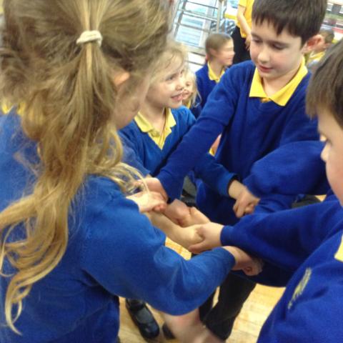 A recent practical assembly focused on working together and teamwork. To help children think about the qualities needed, I carried out two activities with them. The first involved children working in two teams of six. Each group was given 5 pieces of paper that they had to use to step on to get from one end of the school hall to the other. They quickly realised that they didn’t have a piece each! The other task involved children standingin a circle, holding hands with two different children and then working together to untangle their hands without letting go. We decided that a good team has to collaborate, listen and most importantly that everybody has a part to play. In Helen Williams’ assembly, she talked about the success of Louis Hamilton and the very big team that he has. With reference to the bible, we have thought about the role of the disciples and the part that each of them played.