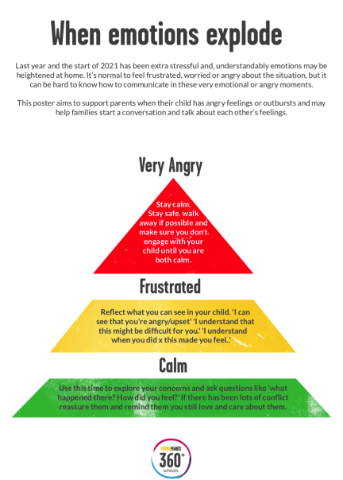 This poster aims to support parents when their child has angry feelings or outbursts and may help families start a conversation and talk about each other’s feelings.
